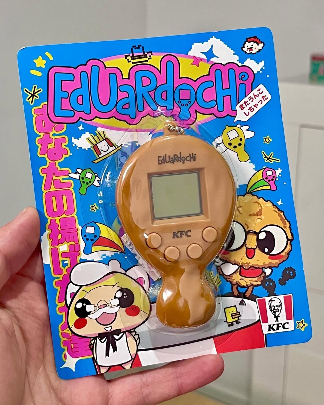 ▼「Eduardochi」的名字其實有一段有趣的來歷,它源自西班牙的一個網路迷因,當時有個炸雞腿被取名為「Eduardo」,並迅速在網上走紅。這股迷因風潮竟然被 KFC 抓住,並給這隻炸雞腿賦予了新的虛擬生命,變成了大家的數位寵物。