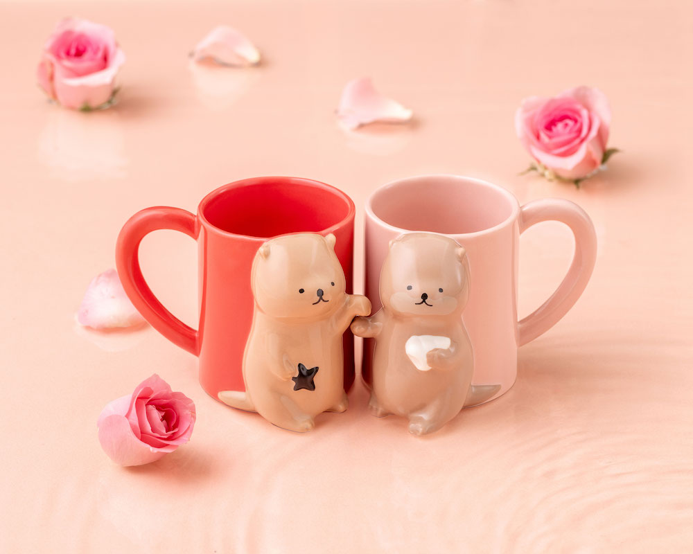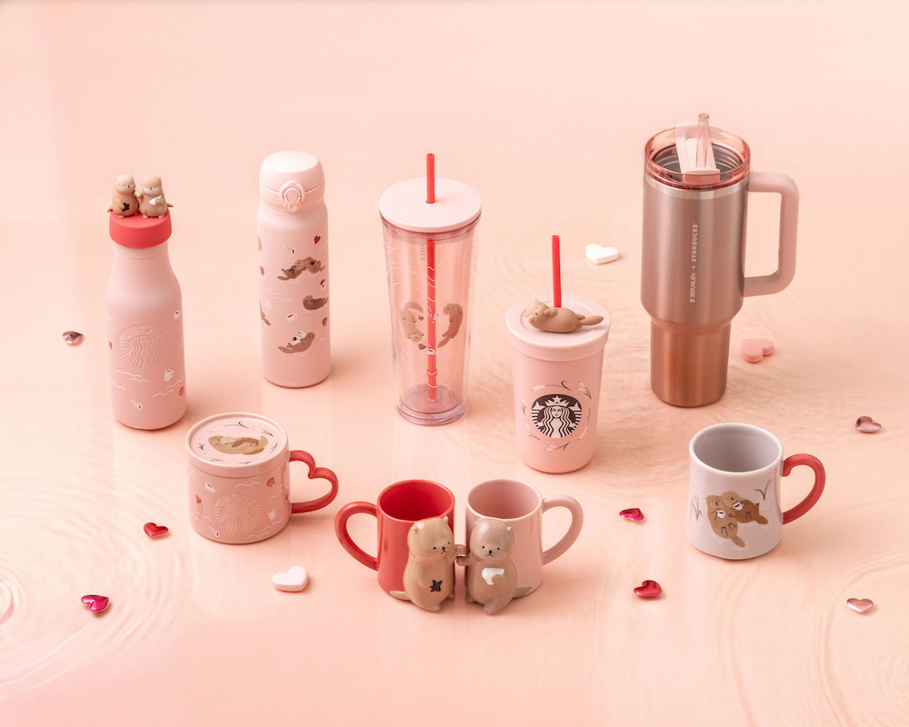 ▼另外,星巴克的情人節新品也已經悄悄登場,這次以可愛的水獺和愛心元素為設計概念,推出了許多粉色系的情人節限定杯款和配件,充滿浪漫的氛圍。最亮眼的就是「天生絕配馬克杯組」,這款杯子設計成兩隻手牽著手,象徵著愛與幸福,無論是送給戀人還是摯友,都是一份超貼心的心意。