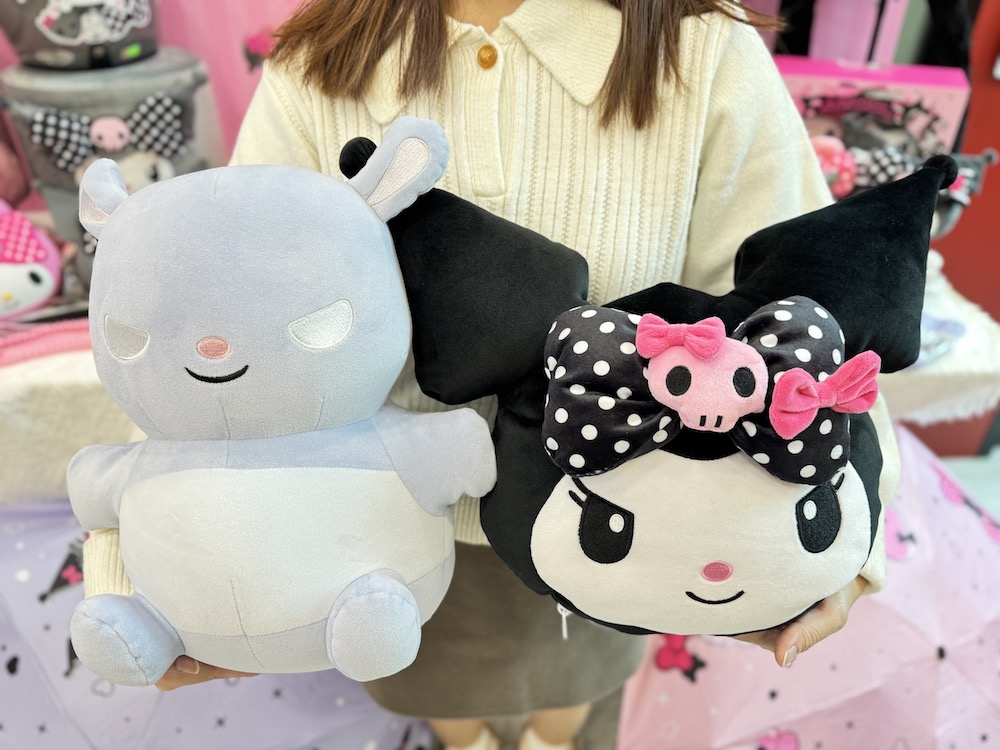 ▼先說說那些絕對不容錯過的熱門周邊!首先是週年限定的絨毛2入組,超級可愛的美樂蒂和酷洛米絨毛公仔,抱回家簡直無法抗拒!再來是兩用翻轉抱枕,超舒適又好玩,兩面設計隨時隨地都能換心情。