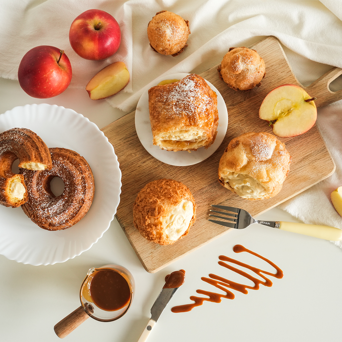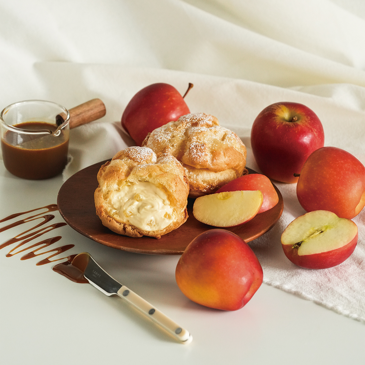 ▼春天的味道,甜蜜登場!「焦糖蘋果泡芙」濃郁焦糖醬與細緻蘋果丁完美融合,每一口都交織著馥郁焦糖與清新果香,讓味蕾感受多層次的幸福滋味。微甜微酸的口感,宛如春天微風輕拂,療癒又滿足。