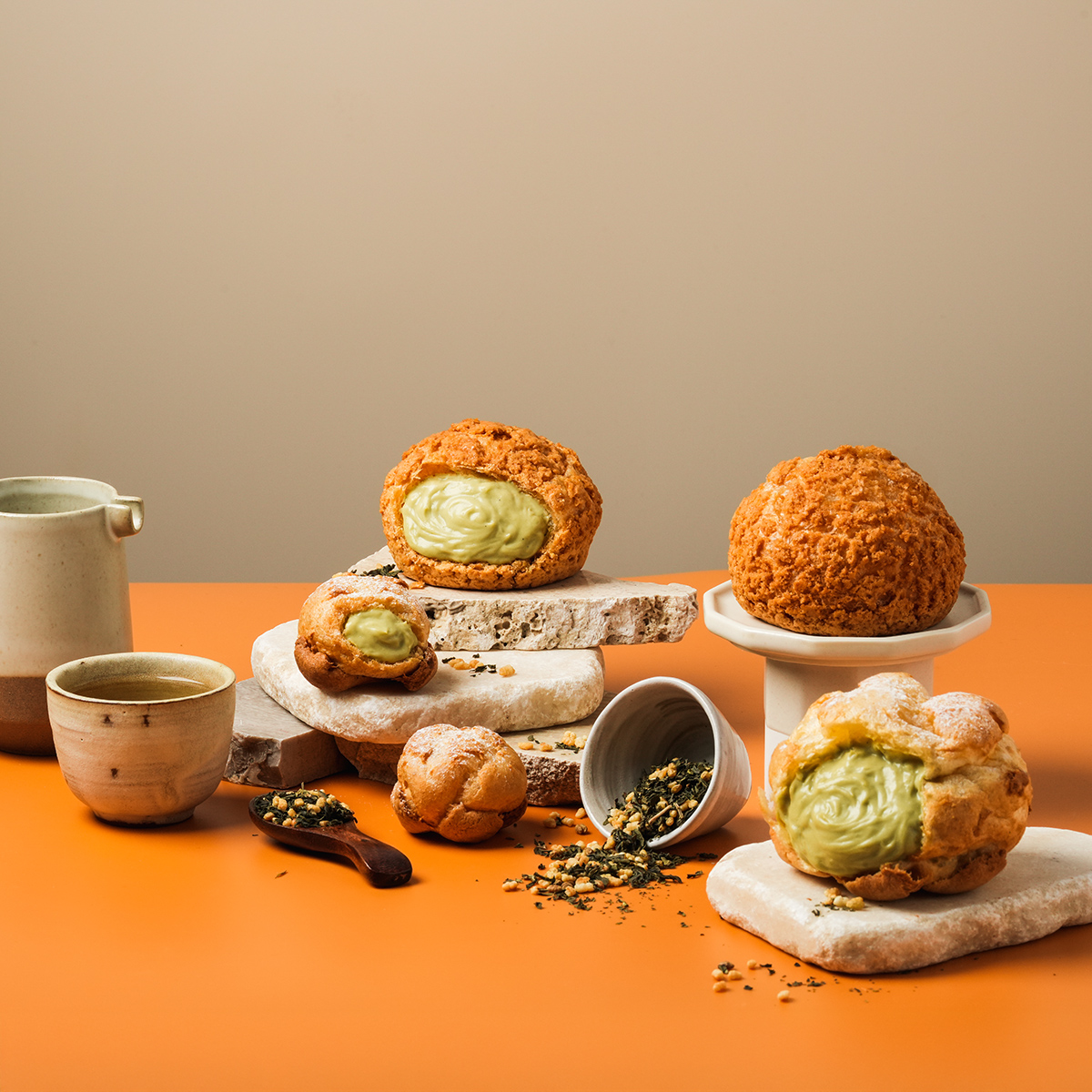 ▼上個月販售的「玄米茶歐蕾泡芙」這個月份也會持續!這款泡芙內餡以香醇玄米綠茶拌入 經典卡士達與優質鮮奶油,打造出清新淡雅的「玄米茶歐蕾內餡」。玄米經過輕烘焙後與綠茶的甘醇滋味完美融合,每一口都帶來層次豐富的口感變化。