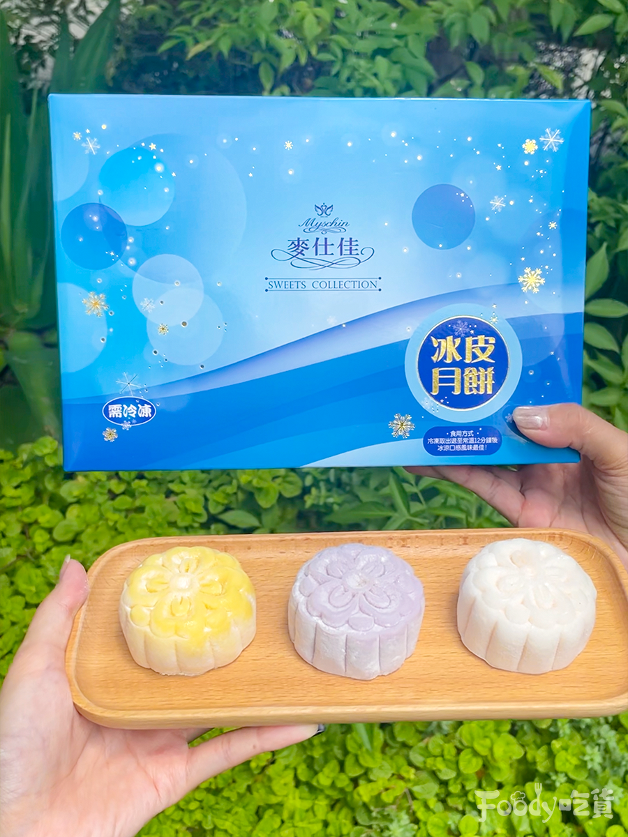 ▼首推麥仕佳主打的「冰皮月餅」,這款每年都會被搶購一空!送禮達人都知道得提前訂購!使用Q彈的外皮,冰冰涼涼的冰皮月餅,一盒就能吃到三款經典口味,包括「奶皇流心」、「香芋牛奶」、「芒果冰心」,每一口都療癒到不行!共有6入跟9入包裝,送禮完全不用選擇障礙!