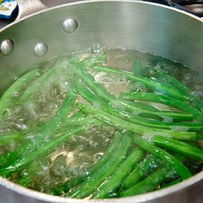 ▼12. 綠色蔬菜:在鍋裡倒入油,再把切好的蔬菜放進去,加入調味料,炒熟後就可以了。喜歡的人還可以加入檸檬汁、醋等材料。注意火候,綠色蔬菜炒得太過顏色會變的很難看,稍微變色就可以出鍋。