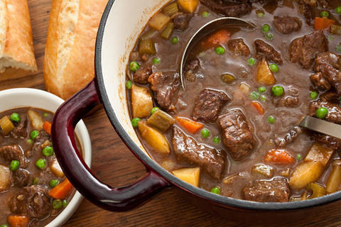 ▼22. 燉牛肉:先將牛肉各個面烤一下,洋蔥等調料在平底鍋中煎一下,然後放入湯鍋中煮,加入一點酒,能讓牛肉味道更鮮美。