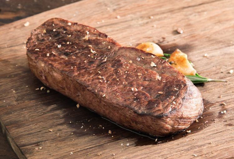 ▼16. 牛排:將牛排表面的水分吸乾,把奶油放進平底鍋中,兩面煎牛排,看到變色後用筷子戳一下,能夠戳透就可以了。