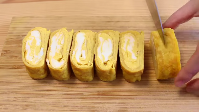 ▼4. 起鍋後,厚厚的玉子燒就完成啦!平均切塊,即可放入便當中。