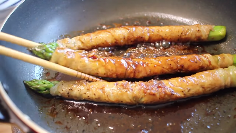 ▼12. 取出來切成斜面,蘆筍豬肉捲完成!