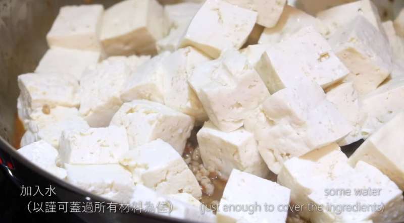 ▼過後加入豆腐和適量的水,大約可以蓋過食材的量就可以了。