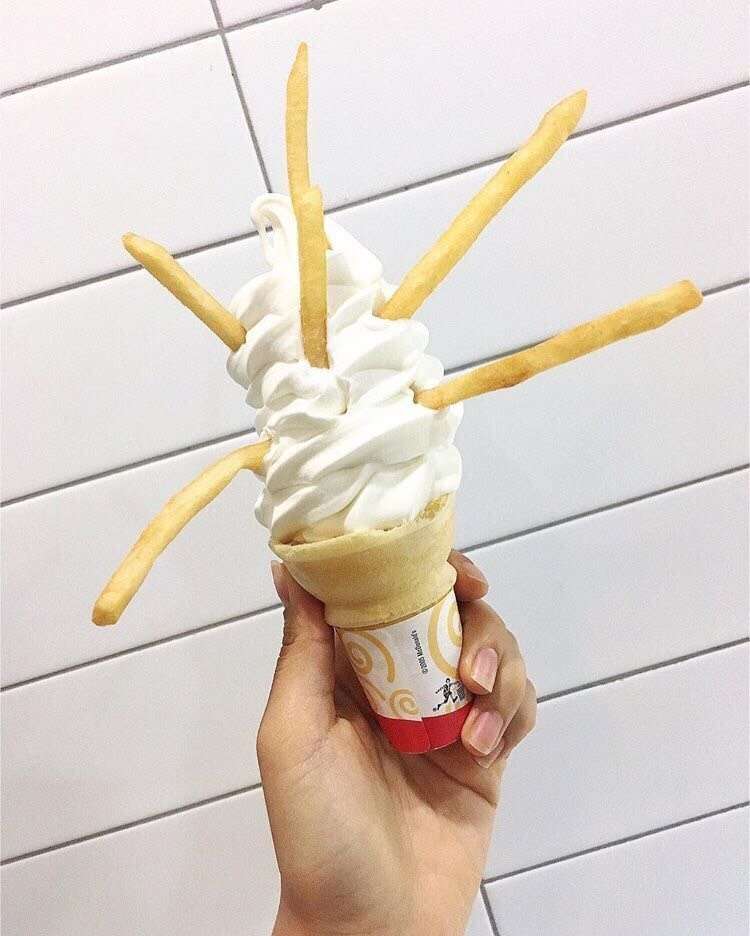 ▼2.蛋捲冰淇淋+薯條─鹹鹹甜甜的滋味,冰與火的加總,吃起來竟然意外的搭軋!
