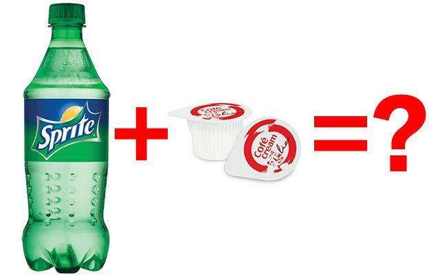 ▼6.雪碧+2球奶精─除了加在玉米濃湯裡面,還可以加在雪碧中!聽說會變成可爾必思!不過口味似乎是見仁見智呀!
