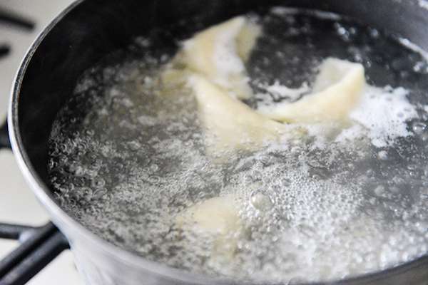 ▼避免水餃煮破的重點是,在水餃第一次煮滾前,要偶爾用鍋鏟或大湯勺的背面,輕輕推動水餃(不能用正面,因為容易把餃子皮戳破),使鍋內的水轉動,縮短餃子與鍋底接觸的時間,以免黏在鍋底。