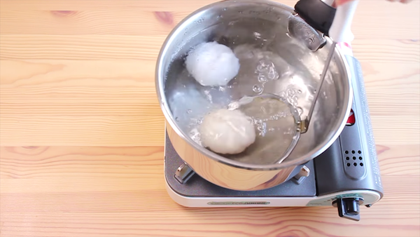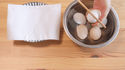 ▼4. 煮完把雞蛋快速放到冰水裡,去殼。(先敲打一下雞蛋會比較好剝)