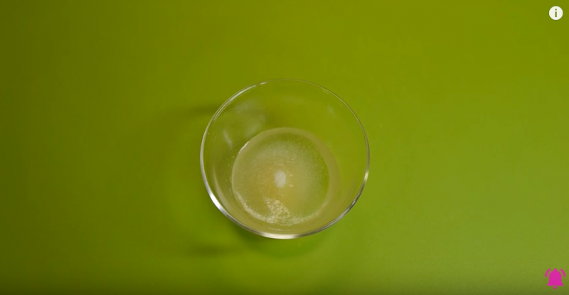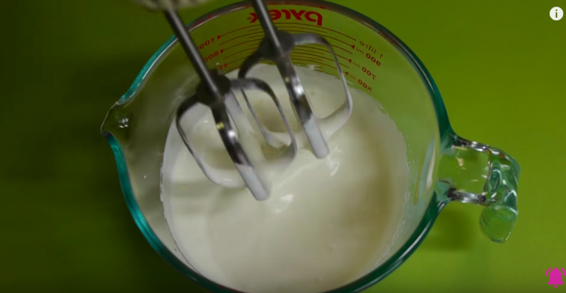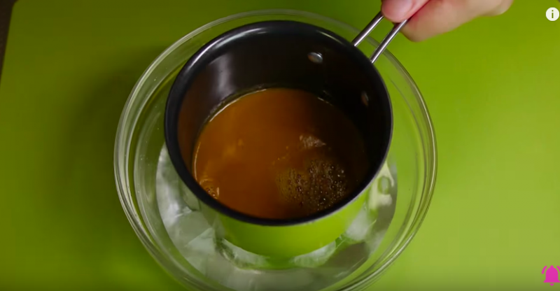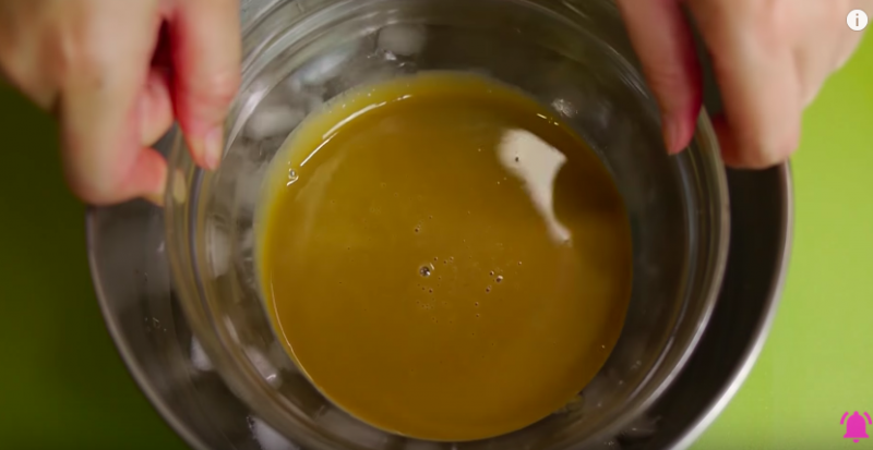 ▼將混合物放在冰水中冷卻,並不斷攪拌,直到混合物變黏稠;