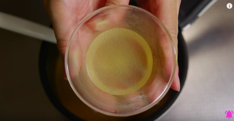 ▼關火後加入吉利丁,過濾後放入冰水中冷卻,並不斷攪拌,直到混合物變黏稠;