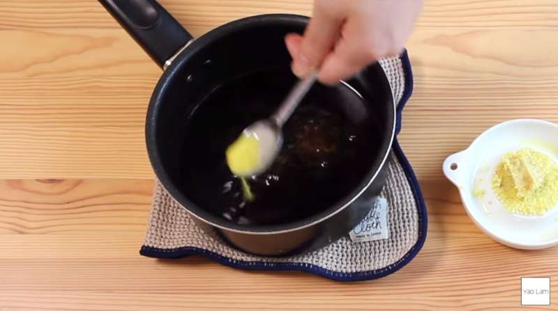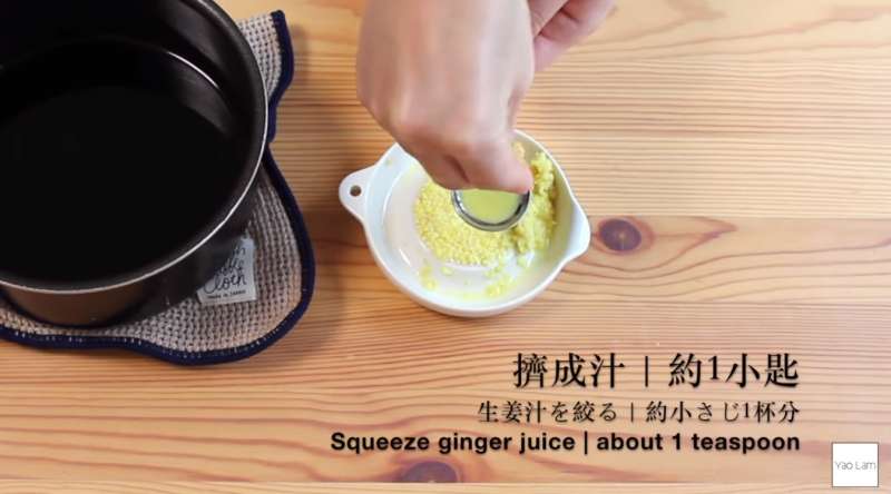 ▼將薑汁倒入鍋中。