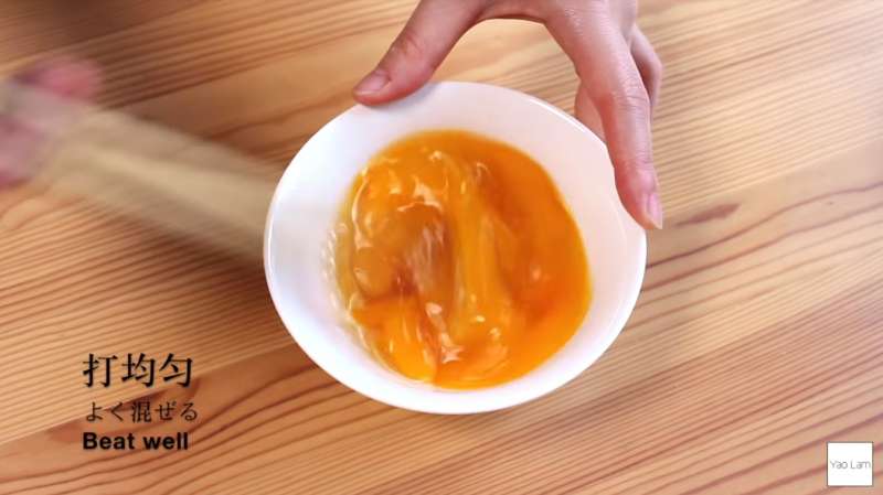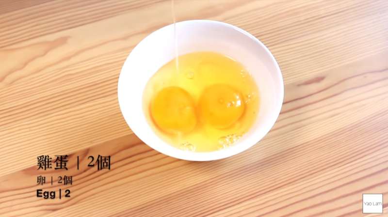 ▼接下來準備雞蛋的部分,首先打兩顆蛋。