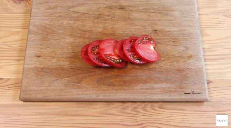 ▼將番茄切片備用。