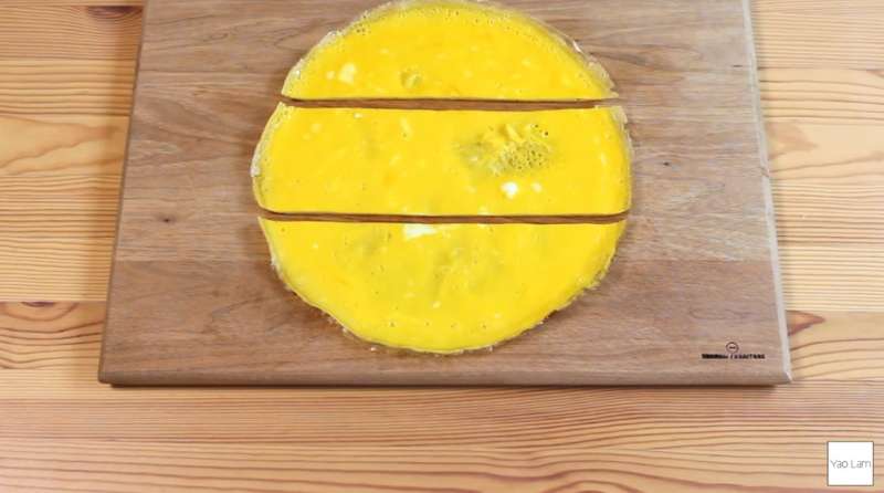 ▼先將蛋皮切成三份。