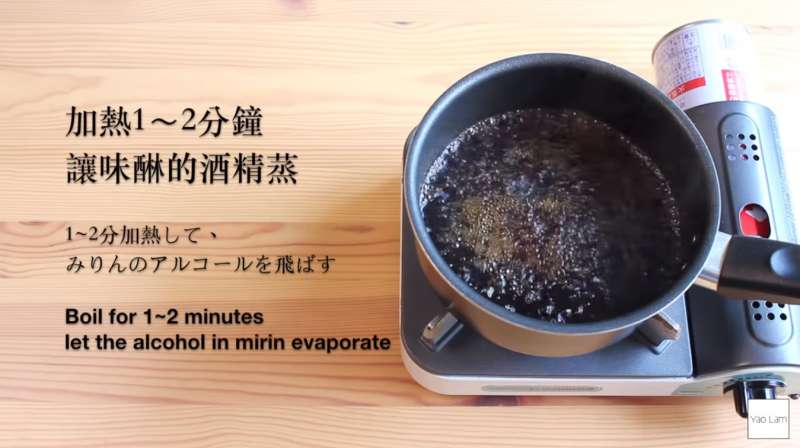 ▼加熱時間約1至2分鐘,讓味醂的酒精蒸發。