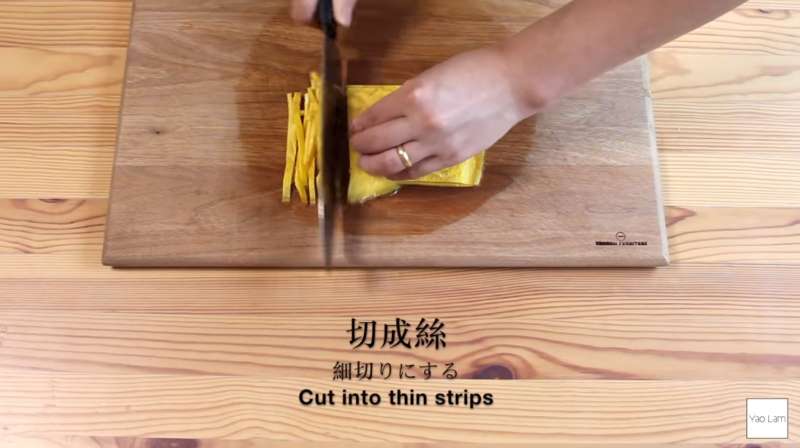 ▼接著疊起來,切成絲。