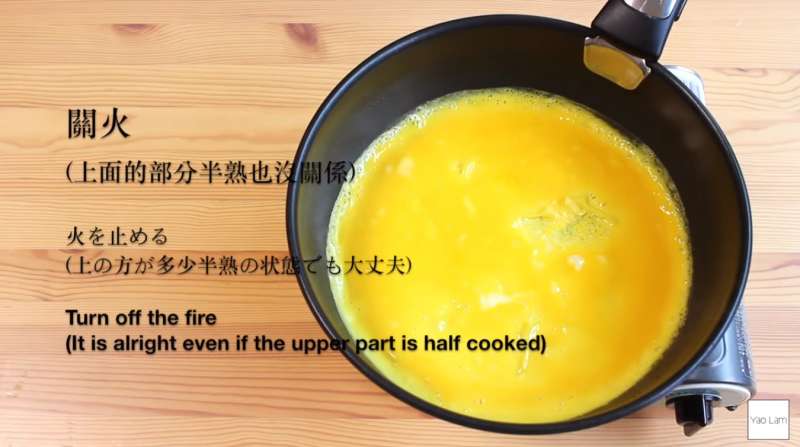 ▼稍微煎一下之後關火,上面部分沒熟也沒關係。