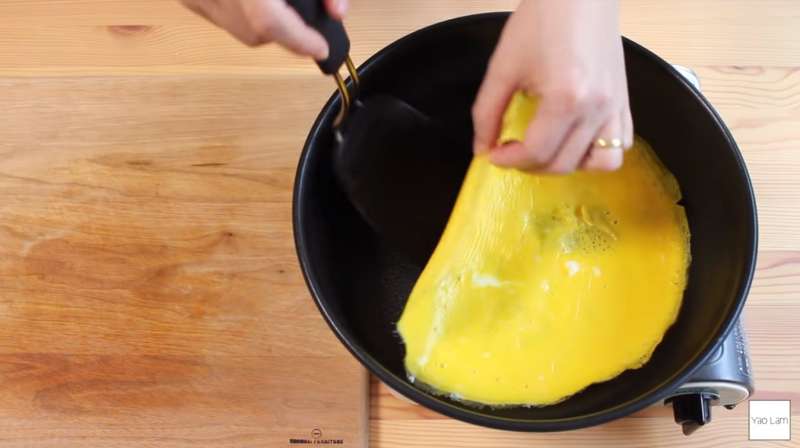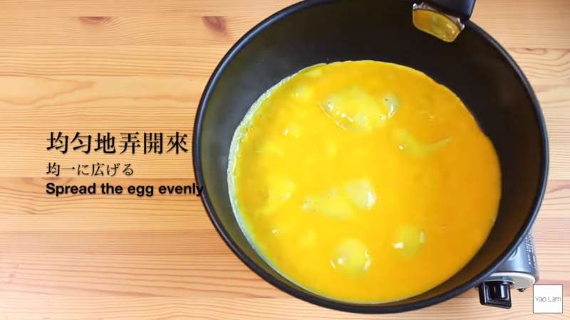 ▼將蛋倒入弄平。