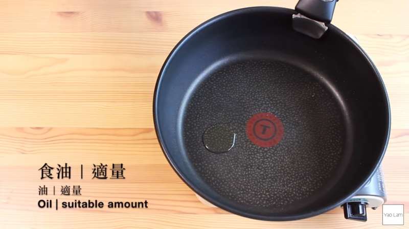 ▼平底鍋熱鍋後,加入少許食油。