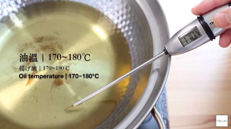 ▼測量油溫,170至180度是最適合的。