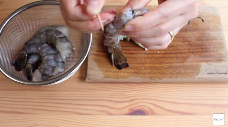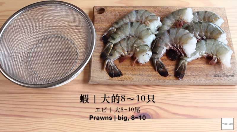 ▼接下來處理蝦子的部分,首先將蝦子去殼。