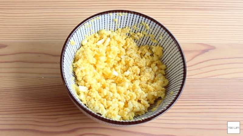 ▼用一顆水煮蛋用叉子壓碎。