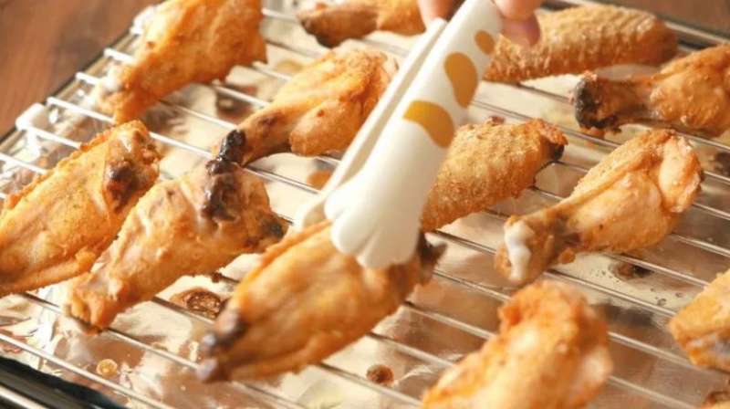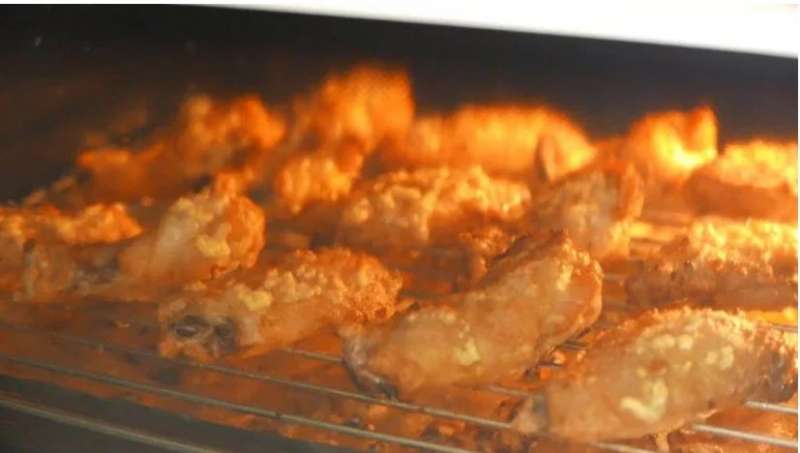 ▼在焗爐中取出雞翼,把雞翅翻面。同時把焗爐溫度調至200℃