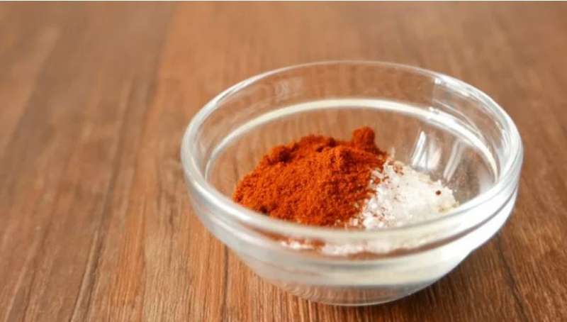 ▼把泡打粉、蒜粉、鹽、糖和煙燻紅椒粉拌勻
