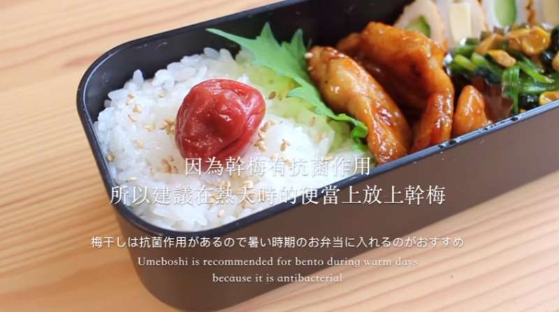 ▼如果天氣很熱時,放上一顆梅乾可以讓便當沒那麼快酸掉!