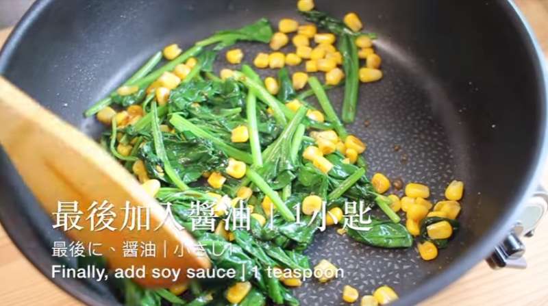 ▼接下來開始準備菠菜和玉米炒奶油醬油吧!