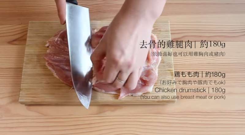 ▼準備一塊去骨的雞腿肉,如果有筋的部分可以將其切掉。