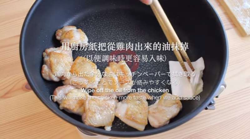 ▼過程中也可以使用廚房紙將多餘的油脂給吸掉。
