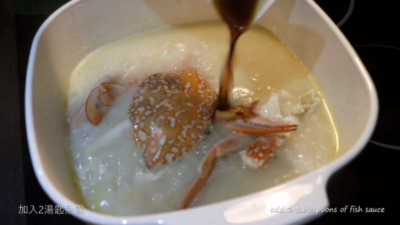 ▼螃蟹熟了之後,可以加入2匙魚露調味。
