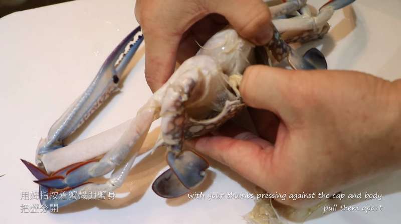 ▼用雙手把螃蟹分開。