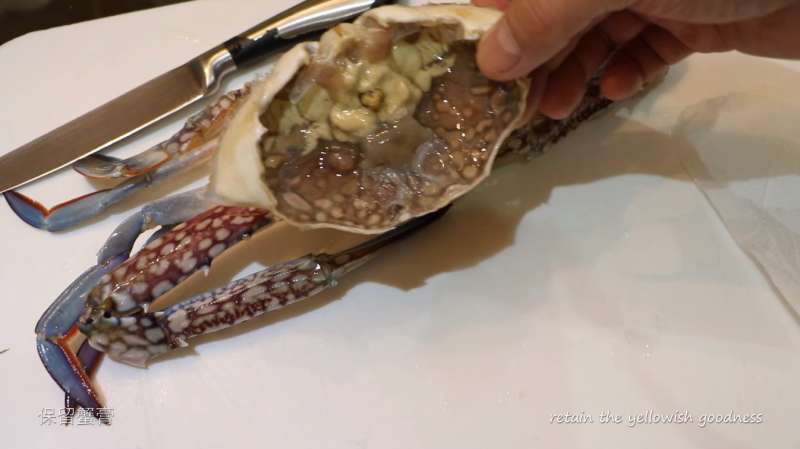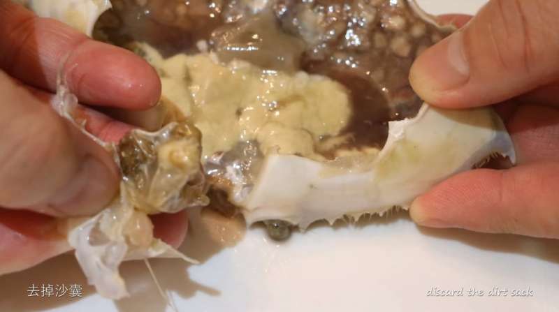 ▼將螃蟹的沙囊去掉。