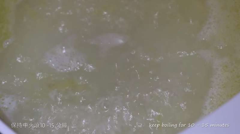 ▼倒入2公升的水,保持中火煮個10-15分鐘,記得不要蓋鍋蓋。如果想要吃比較軟一點的粥,也可以視情況演出煮粥的時間。