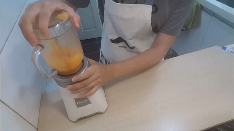 步驟3. 把芒果泥和打好的乳酪餡攪拌均勻,然後準備適合的保鮮盒,份量自己決定~