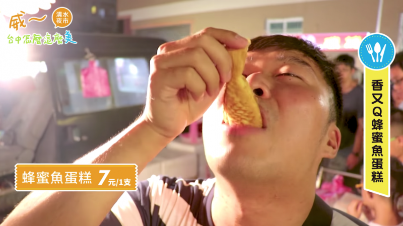 ▼清水夜市的「鎮夜市之店」就是這個「蜂蜜魚蛋糕」,才7塊錢卻烤到超好吃,每次都可以看到很多人搶著買。