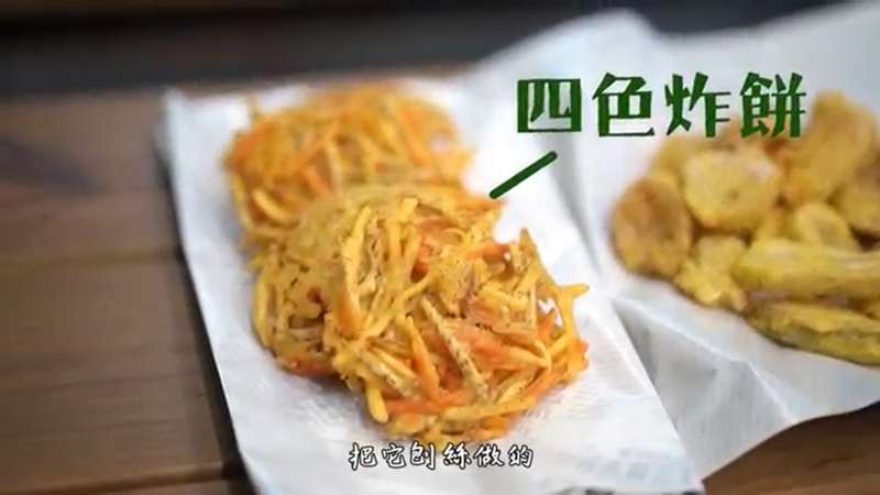 ▼乾淨明亮的店面,高達20種選擇得炸物,其中四色炸餅是用地瓜、南瓜、芋頭、紅蘿蔔刨絲做成的