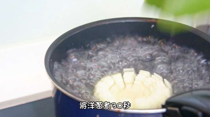 ▼把洋蔥用手輕輕撥開後,煮一鍋滾水準備燙洋蔥,燙30秒就可以起鍋了唷!這個步驟能讓洋蔥花更盛開~