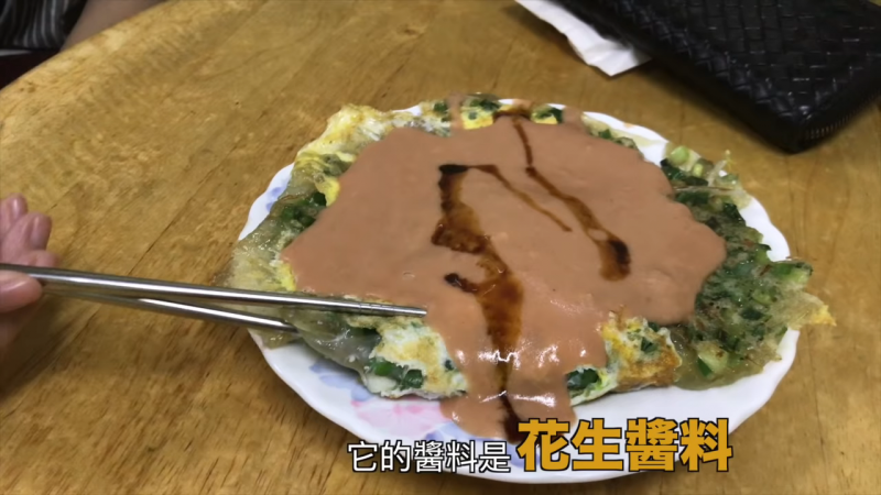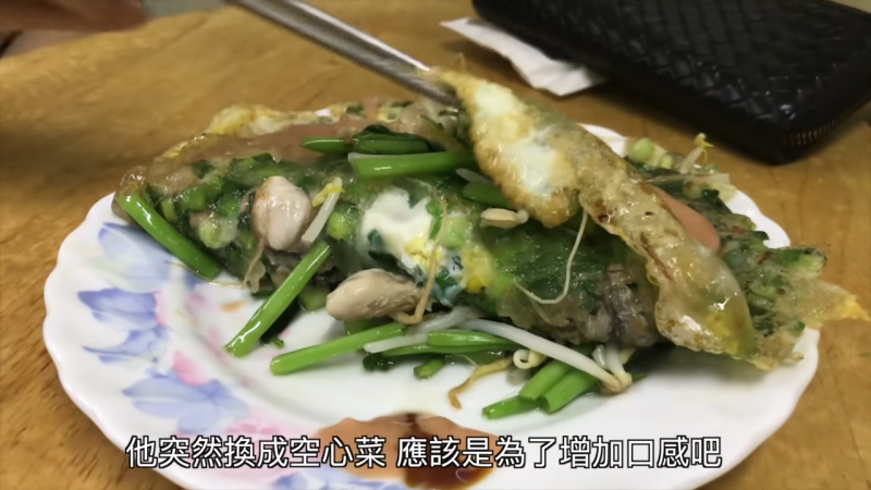 ▼裡面別於一般使用小白菜的蚵仔煎,這裡是使用空心菜,口感蠻不同的!