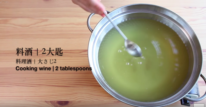 ▼在湯中加入料酒、味醂、醬油、醋;