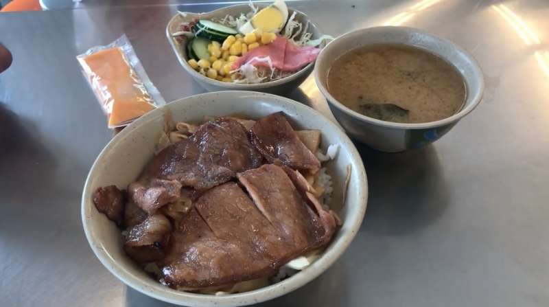 特色是用炭火燻烤的燒肉飯,點主餐就附上沙拉跟湯,70元燒肉飯可以吃這三樣,CP值蠻高的啊!