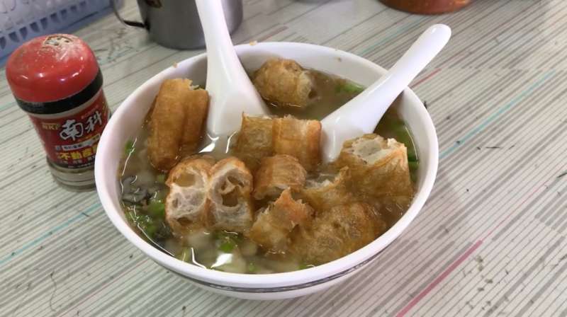 營業24小時的悅津鹹粥,可以從早餐吃到宵夜,綜合鹹粥裡面有蚵仔、魚肉、魚皮等,加上油條很澎湃。