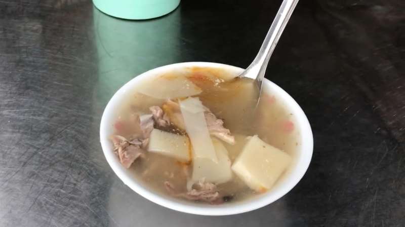 有筍子的鴨肉湯吃起來湯頭鮮甜,鴨肉也不少塊,口感有嚼勁,加上薄薄的勾芡,灑上一些胡椒更提味。