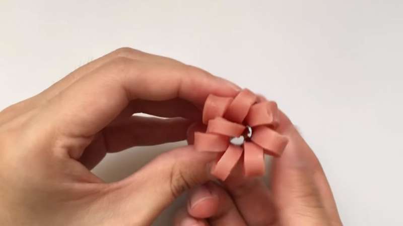 ▼最後將火腿切半後,做成造型放進便當盒內。